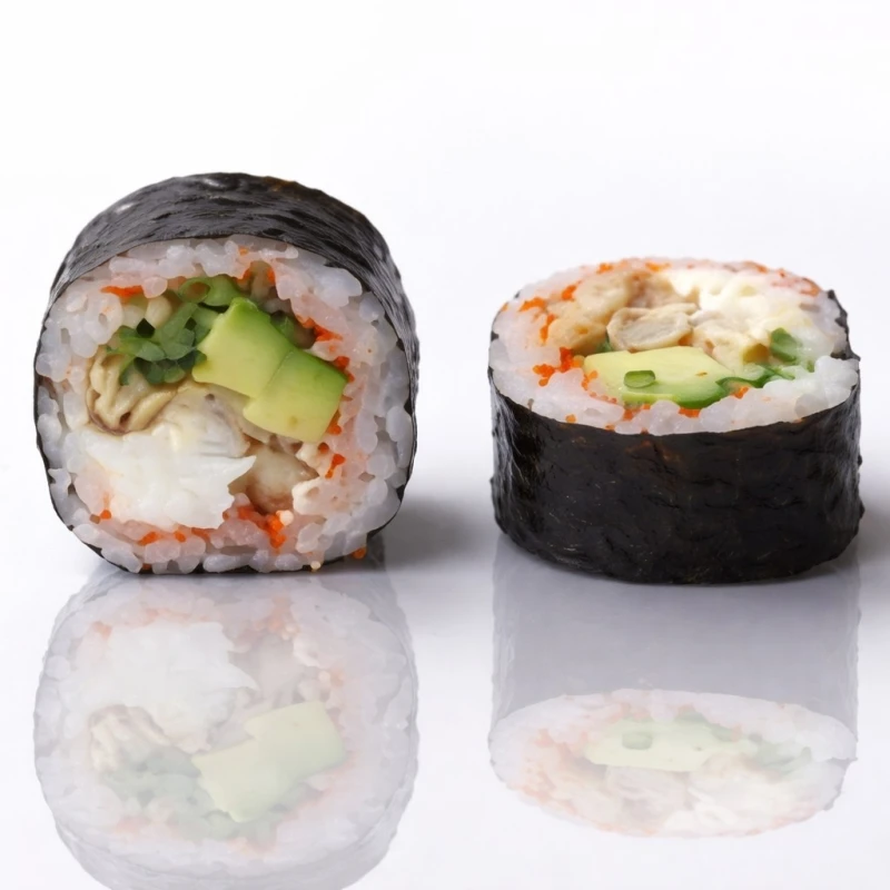 Рис, нори , копченый угорь, сыр сливочный, авокадо, огурцы, икра масаго. Годен в течении 3 часов при t 20°C, 12 часов при t 4±2°C. Изображение на сайте и внешний вид продукта могут отличаться.