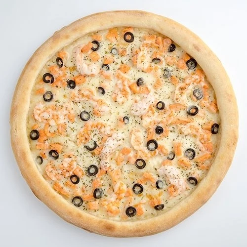 Тесто, соус бешамель, сыр моцарелла, маслины, нарезка лосося, креветка, сыр пармезан, мука кукурузная. Годен в течении 3 часов при t 20°C, 12 часов при t 4±2°C. Изображение на сайте и внешний вид продукта могут отличаться.