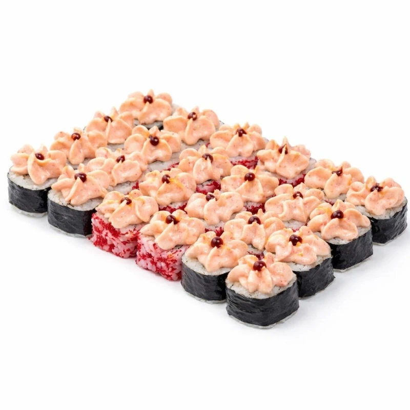 24шт Запеченный Краб омлет (состав: Рис, нори , сыр сливочный, икра масаго красная, снежный краб с майонезом, омлет, фирменный соус для запекания, соус унаги, кунжут) Запеченный окунь тунец (состав: Рис , нори, сыр сливочный, тунец маринованный, тилапия жареная, салат айсберг, лук зелёный, фирменный соус для запекания, соус унаги, кунжут) Запеченный немо (состав:Рис, нори , сыр сливочный, тилапия жареная, помидоры, салат айсберг, фирменный соус для запекания, соус унаги, кунжут) Годен в течении 3 часов при t 20°C, 12 часов при t 4±2°C. Изображение на сайте и внешний вид продукта могут отличаться.
